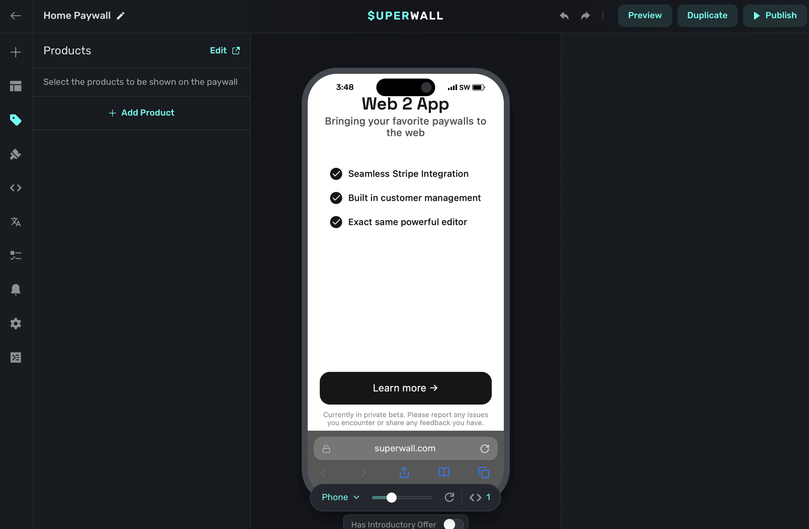 Create products in Stripe or Paddle (private beta) to show on your web paywalls.