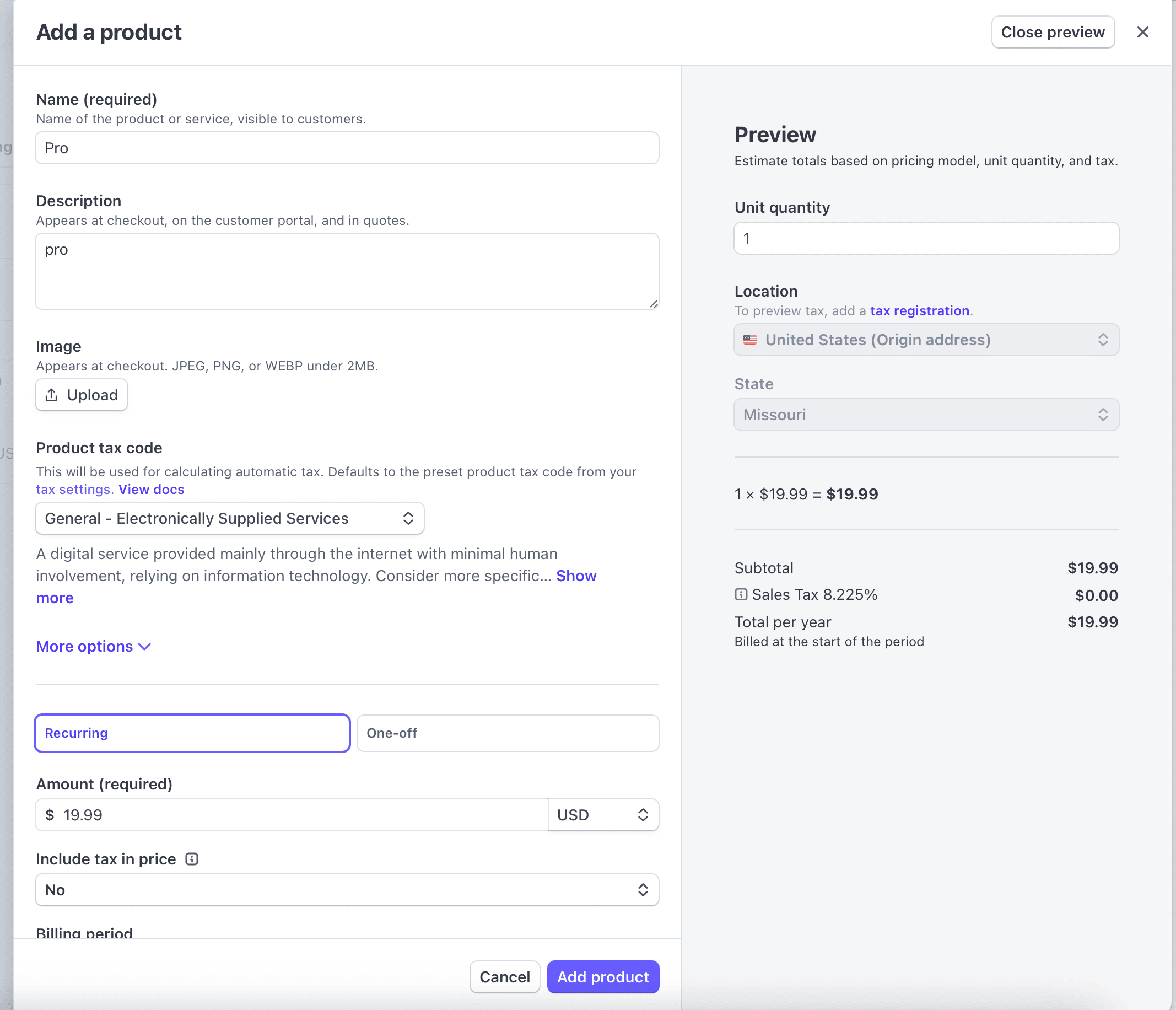 - Amount: The price of your product, and what it will renew at if it's recurring.